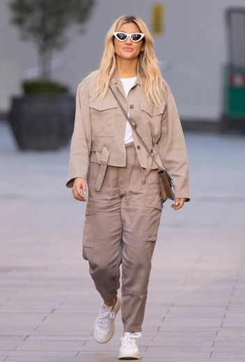 Для тех, кому порядком надоела палитра темных оттенков за долгие зимние месяцы, фэшн-инфлюенсеры напоминают о беспроигрышном колор-варианте для наступающей весны — беже. Исполнительница Эшли Робертс показывает, как легко можно вписать его в свой повседневный стритстайл. Звезда выгуливает брючную комбинацию в полуспортивном стиле, которую дополняют белые кроссовки и футболка. Завершают образ клатч Gucci и солнцезащитные очки.
