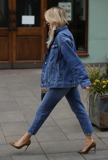 В теплый сезон деним возвращается в звездный стритстайл и демонстрирует свою универсальность во всей красе. Неудивительно, ведь джинсовые луки смотрятся уместно и стильно в любых жизненных ситуациях и всегда оставляют место для вашей индивидуальности, фэшн-почерка, вкуса и стиля. Отличный пример, как можно носить деним весной и летом 2021, показывает Эшли Робертс: знаменитость выгуливает деним-комбинацию с джинсами и легкой курткой, сочетая их с вещами в коричневом — трикотажной кофтой и лакированными туфлями-лодочками. Звезда дополняет аутфит солнцезащитными очками и сумкой Louis Vuitton.