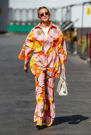 Пижамный стиль становится все более и более популярным с каждым сезоном. Причина такого ажиотажа проста: после пандемии мы совсем не хотим возвращаться к неудобным и сковывающим движения вещам. К пижамным лукам обращаются и звезды стритстайла, которые раньше всегда были готовы принести в жертву комфорт ради моды. Среди них – Эшли Робертс, которая на днях примерила необычную вариацию расслабленного образа для публичных выходов. Телеведущая взяла за основу яркий костюм с красочным принтом и дополнила его лаконичным топом, ярко-желтыми туфлями и молочной сумкой.