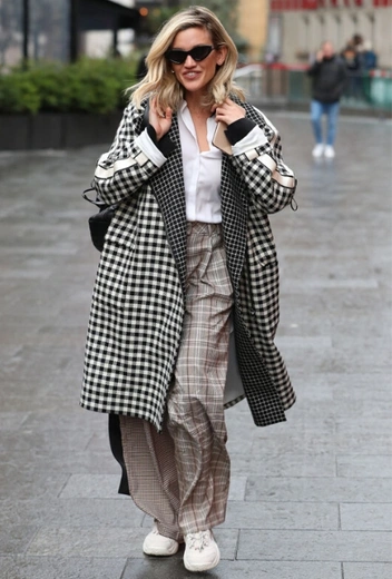 Зимний стритстайл традиционно богат серыми, белыми и черными оттенками — причем в самых разных вариантах сочетания. Разнообразить такую палитру знаменитости стараются яркими аксессуарами, оригинальными фасонами и текстурами. Например, Эшли Робертс старается выбирать вещи с необычным кроем и оригинальные комбинации. Например, в этом образе она совестила самые разные варианты клетки, причем особенное внимание уделила брюкам. Весь этот клеточный «беспредел» удачно разбавила классическая белая блуза, кроссовки в тон и черные очки.