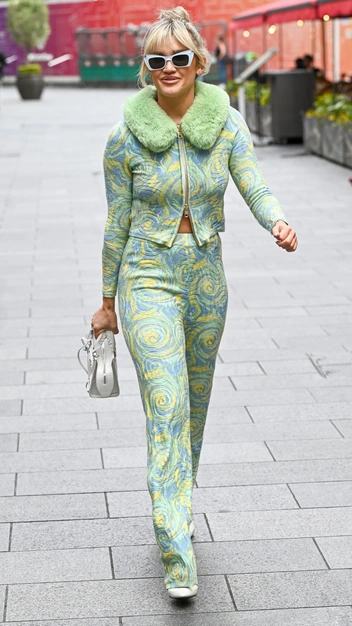 Актриса показала самый актуальный сет, вдохновленный гламурной эпохой. Стильный костюм с укороченным жакетом с меховой отделкой на воротнике и прямыми брюками с высокой посадкой не оставят вас незамеченной в толпе. По примеру звезды дополняем лук обувью на каблуке и солнцезащитными очками в белой пластиковой оправе.