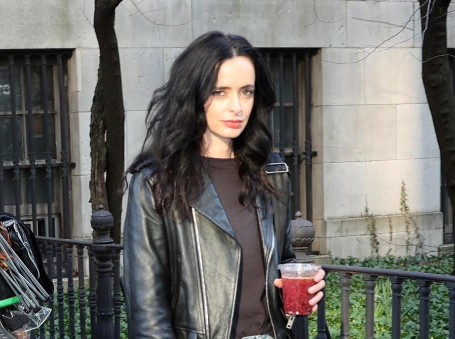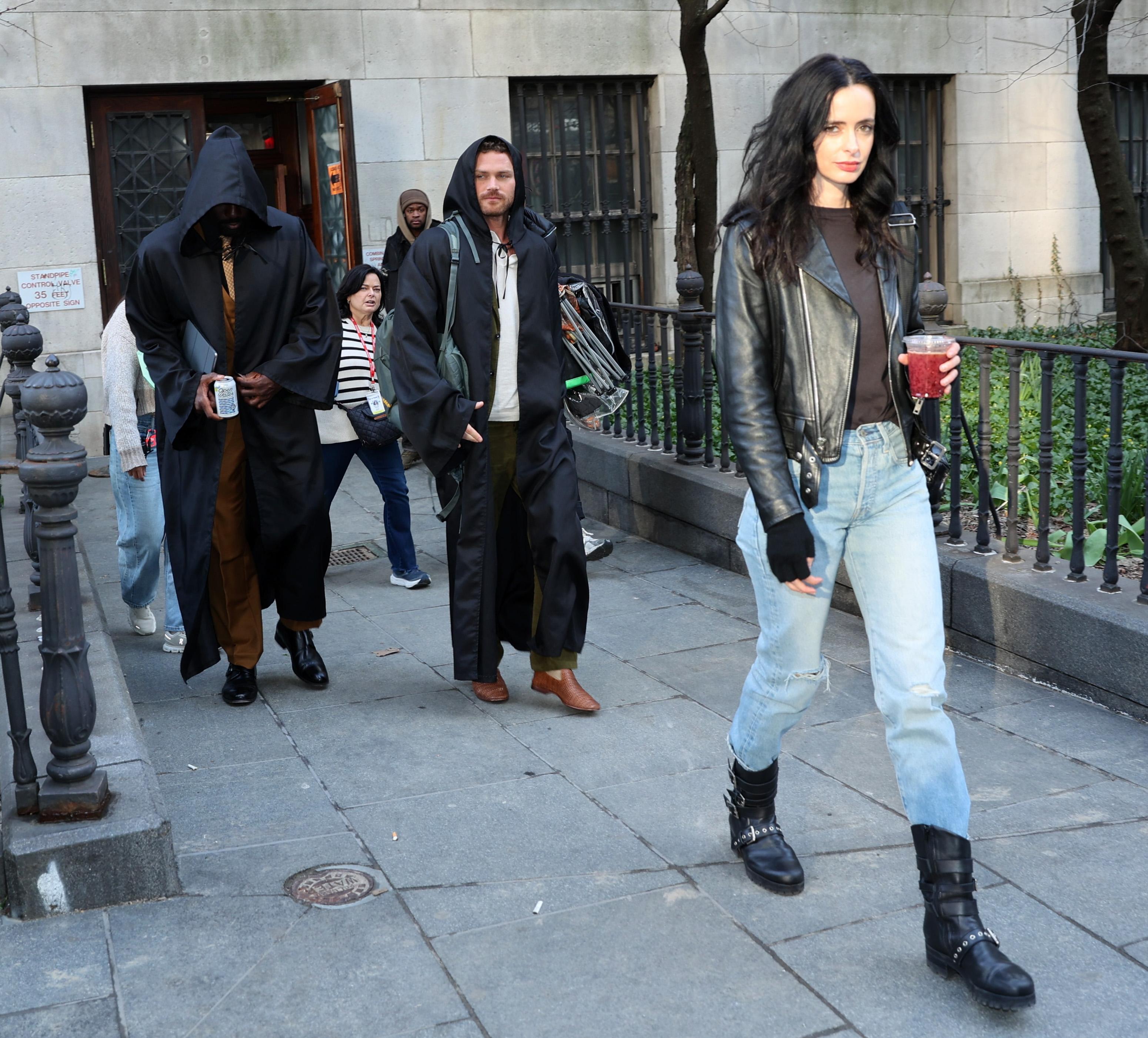 Аутфит Кристен будто собран по канонам идеальной гранж‑героини: короткая кожаная косуха, черный топ и вываренные прямые джинсы с легкими потертостями создают узнаваемый силуэт девушки из инди‑комикса, которая всегда выделяется из толпы. Брутальные байкерские ботинки с пряжками и перчатки без пальцев усиливают рок‑настроение, а свободные темные волосы добавляют к этому образу будничности — словно все это не продуманный стилистами лук, а естественное продолжение ее характера.