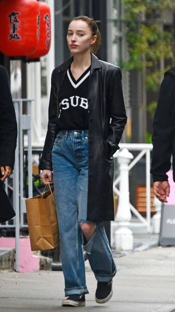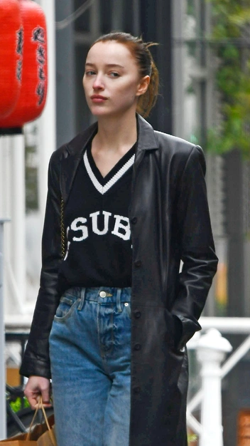 Актриса Фиби Дайневор на роль модного трендсеттера не претендует, однако у девушки получается собирать стильные повседневные образы. Подтверждение тому — ее недавний выход в Нью-Йорке. Фиби надела голубые джинсы и джемпер с V-образным вырезом. К нему звезда подобрала кожаное полупальто — один из главных трендов последних нескольких сезонов. Завершила свой аутфит Дайневор черными слипонами на плоском ходу.