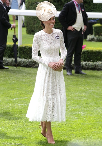 Во второй день Королевских скачек в Эшкоте все внимание приковано к принцу Уильяму и герцогине Кембриджской. Для Royal Ascot Кейт выбралоа кружевное платье Dolce & Gabbana - то самое, в котором в апреле она красовалась на мероприятии, посвященном дню рождения Елизаветы II. Тогда поверх этого платья Кейт надела красный жакет бюджетной марки Zara, чем не мало всех удивила.