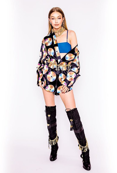 15 апреля креативный директор Moschino Джереми Скотт объявил, что ввереный ему бренд готовит коллаборацию со шведским H&M. Уже через день в Instagram (запрещенная в России экстремистская организация) масс-маркет-гиганта появилось фото Джиджи Хадид: топ-модель примерила мини-платье, разукрашенное в переливающиеся (и давно забытые) CD-диски. Дополнили образ Джиджи черные ботфорты, синий бралетт и украшение в виде цепи на шее — стиль Скотта в этом наряде угадывается безошибочно.