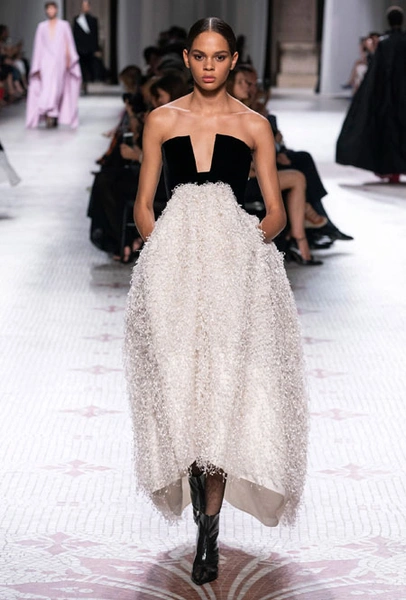 За время работы на французский модный Дом Givenchy британка Клэр Уайт Келлер задала настолько высокую планку, что держать ее сложно даже для нее самой. Однако сезон за сезоном дизайнер доказывает, что весьма успешно с этим справляется. На неделе моды в Париже она представила новую кутюрную коллекцию Nobless Radicale – очередное доказательно ее мастерству. Футуристичные костюмы, переливающиеся оверсайз-жакеты, щедро усыпанные пайетками, лавандовые кейпы, пышные наряды с драпировками, объемные накидки с растительными орнаментами – все, в чем дизайнер всегда преуспевала, в этом сезоне удачно вписалось в эстетику Дома.