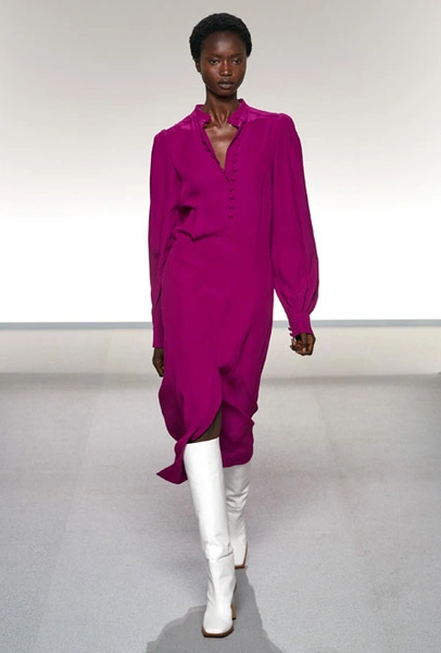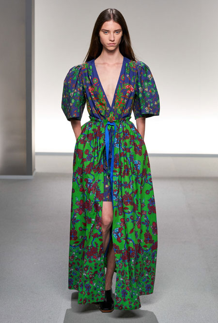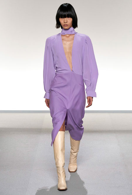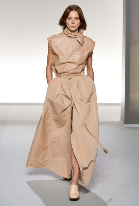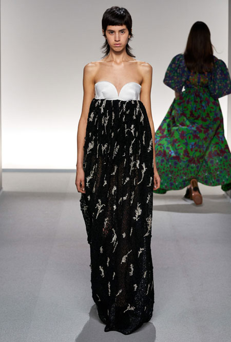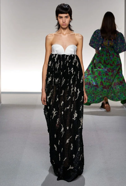 На подиуме Парижской недели моды дизайнер Клэр Уайт Келлер вовсю фантазировала на тему слияния стилей двух модных столиц – Парижа и Нью-Йорка, в котором она долгое время работала. Так, любовь к струящимся тканям и невесомым материалам, которую нередко приписывают жительницам французских городов, встретилась с динамичными и маскулинными фасонами американского стиля. На подиуме дизайнер представила классические костюмы с шортами-бермудами, легкие струящиеся платья насыщенного фиолетового оттенка, наряды в мелкий цветочный принт, который полюбился клиентам Дома еще в прошлом сезоне, а также все вариации кожи, которая в будущем сезоне вновь будет солировать среди трендов.