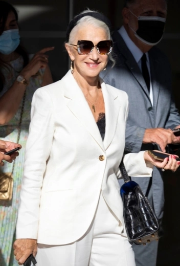 Классика черно-белого остается любимой модной опцией селебрити даже в Каннах. Аутфиты в этой гамме идеально смотрятся в рамках привычных деловых выходов в городе, но не менее интересно могут раскрыться в атмосфере высокой моды, которой известен Лазурный берег. Хелен Миррен — известная сторонница лаконичности в стиле, поэтому неудивительно, что в свой выходной гардероб, составленный специально для кинофестиваля, звезда включила брючную комбинацию в black&white. Хелен представила микс костюма с приталенным жакетом цвета слоновой кости, кружевного топа и черных туфель на небольшом каблуке. Аутфит завершили классическая кожаная сумка в тон обуви и солнцезащитные очки с декоративной отделкой.