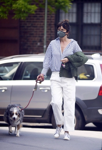 Рядовую прогулку Хелены Кристенсен легко принять за модную съемку – настолько стильно и фотогенично она выглядит даже во время повседневной рутины. 51-летняя датская супермодель и фотограф попадает в объективы папарацци не так часто, зато каждый раз доказывает, что годы ее только красят, а стиль в одежде до сих пор остается безупречным. Так, для прогулки с собакой она выбрала свободные молочные джинсы, рубашку в полоску и захватила с собой стеганый жилет оттенка хаки на случай прохладной погоды.