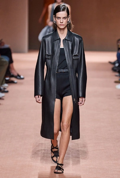 В новой коллекции креативный директор бренда Надеж Ване-Цыбульски показала свое мастерство в работе с кожей – самым трендовым материалом последних сезонов. Для весны и лета дизайнер предлагает универсальную природную палитру: песочно-серый, миндальный, хаки, оттенки киви и насыщенный винный. В этой цветовой гамме были выполнены минималистичные фартуки из плотной кожи, платья с плиссированными юбками, лаконичные топы, трикотажные костюмы с майками и мини-шортами, а также структурированные жакеты в милитари-стиле с накладными карманами.