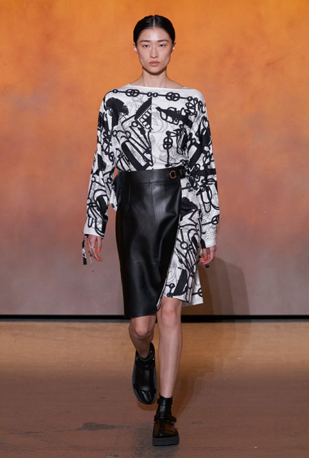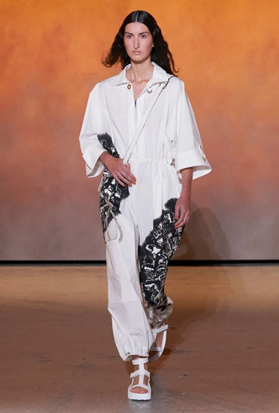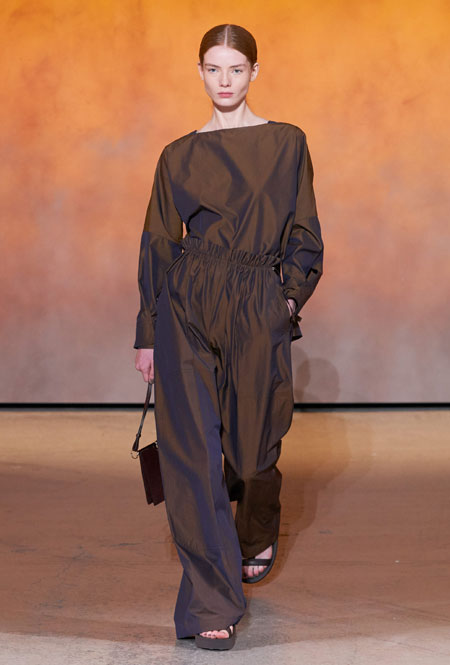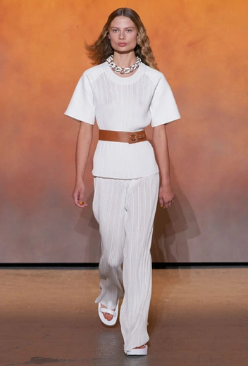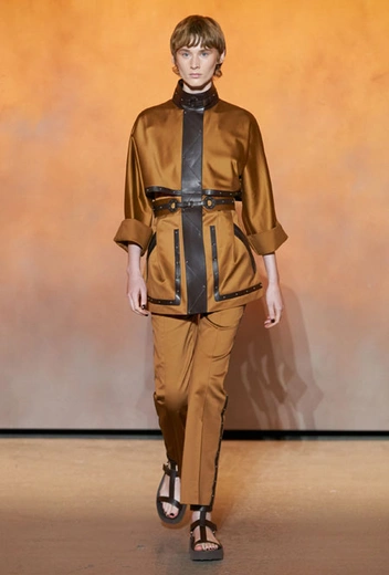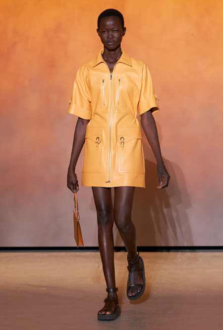 Для весны и лета бренд представил все многообразие предметов базового гардероба с интеграцией ультрамодных деталей. Основу коллекции составила природная палитра: от коричневых оттенков до цвета охры. База выглядит универсально, отлично подстраивается под разные стили гардероба и при этом совсем не выглядит скучно. Одним их ключевых трендов коллекции стала кожа во всем ее многообразии: универсальные комбинезоны, которые можно носить на каждый день и на вечер, мини-платья и практичные костюмы. А в качестве завершающих акцентов были выбраны сандалии на массивной платформе – универсальное дополнение, которое подходит к любым летним нарядам.