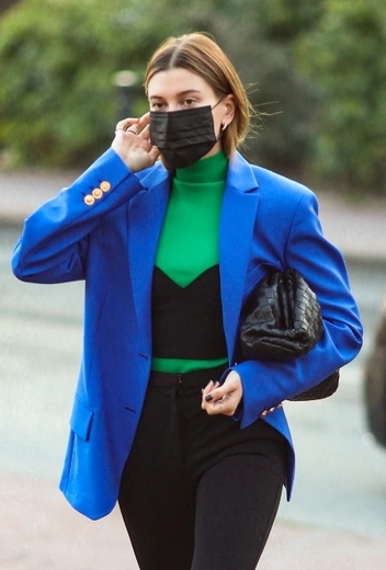 Для сезонных городских выходов Хейли Бибер никогда не жалеет стильных решений, поэтому ее считают одним из самых ярких фэшн-инфлюенсеров последних лет. С приходом весны девушка переориентирует свой гардероб на насыщенную цветовую палитру и смелые модельные комбинации. Для очередной фотосъемки, ради которой знаменитость прилетела в Париж, Хейли примерила стильный лук, который буквально взорвал звездную фотохронику: звезда представила сочетание черных облегающих брюк с расширенными книзу штанинами, черно-зеленого верха и ярко-синего жакета с золотыми запонками. Образ завершили сумка Bottega Veneta и открытые туфли на каблуке.