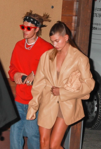Хейли Бибер – главная поклонница кожаных вещей, от которых не желает отказываться даже в теплое время года. Девушка носит их как на ковровые дорожки, так и на свидания с мужем Джастином Бибером. Недавно она вновь показала стильную вариацию кожаного тотал-лука, который будет идеальным решением для романтической встречи. Звезда взяла за основу бежевый оверсайз-пиджак и дополнила его нюдовым платьем, клатчем в тон и босоножками на высокой шпильке.