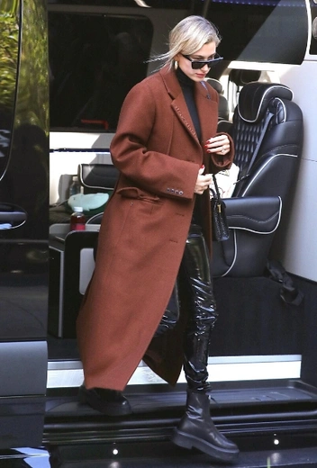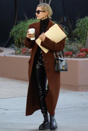 В последнее время Хейли все чаще появляется вместе с супругом на деловых мероприятиях и, кажется, принимает самое активное участие в развитии карьеры Джастина. При этом каждый совместный выход пары становится настоящим стритстайл-хитом, а образы модели сразу завоевывают модную хронику. На днях она пополнилась очередным ярким аутфитом: Хейли составила компанию Джастину во время бизнес-встречи в Санта-Монике и продемонстрировала стильную комбинацию в total-black, которую дополнили утепленное коричневое пальто и черные очки.
