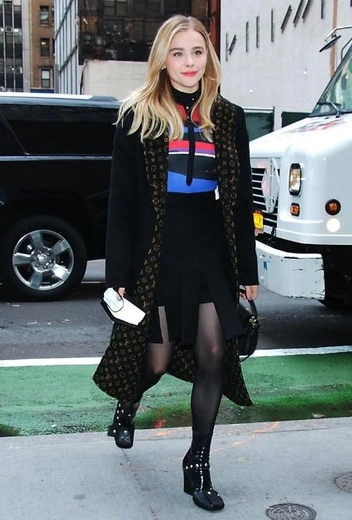Иногда для того, чтобы образ заиграл свежо и подчеркнул вашу индивидуальность, вполне достаточно сделать акцент всего на одном элементе гардероба и тщательнее продумать цветовую палитру лука. Например, как это делает Хлоя Морец: для деловых будней звезда подбирает образ с пальто Louis Vuitton, ярким верхом и юбкой с разрезами, который удачно дополняет обувь на каблуке с квадратным мысом в любимом стиле знаменитости. Аутфит завершают мини-сумка и легкий дневной макияж.