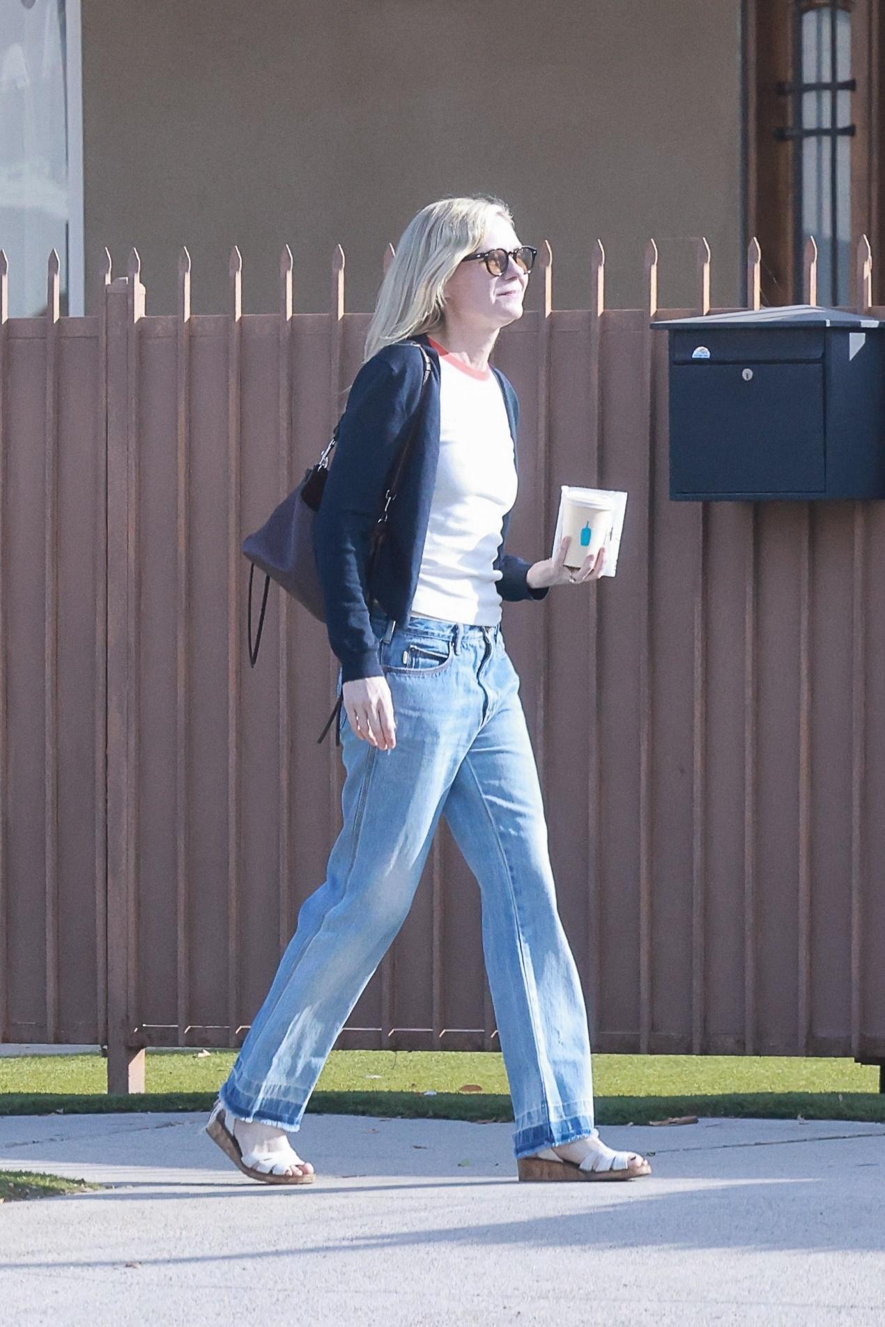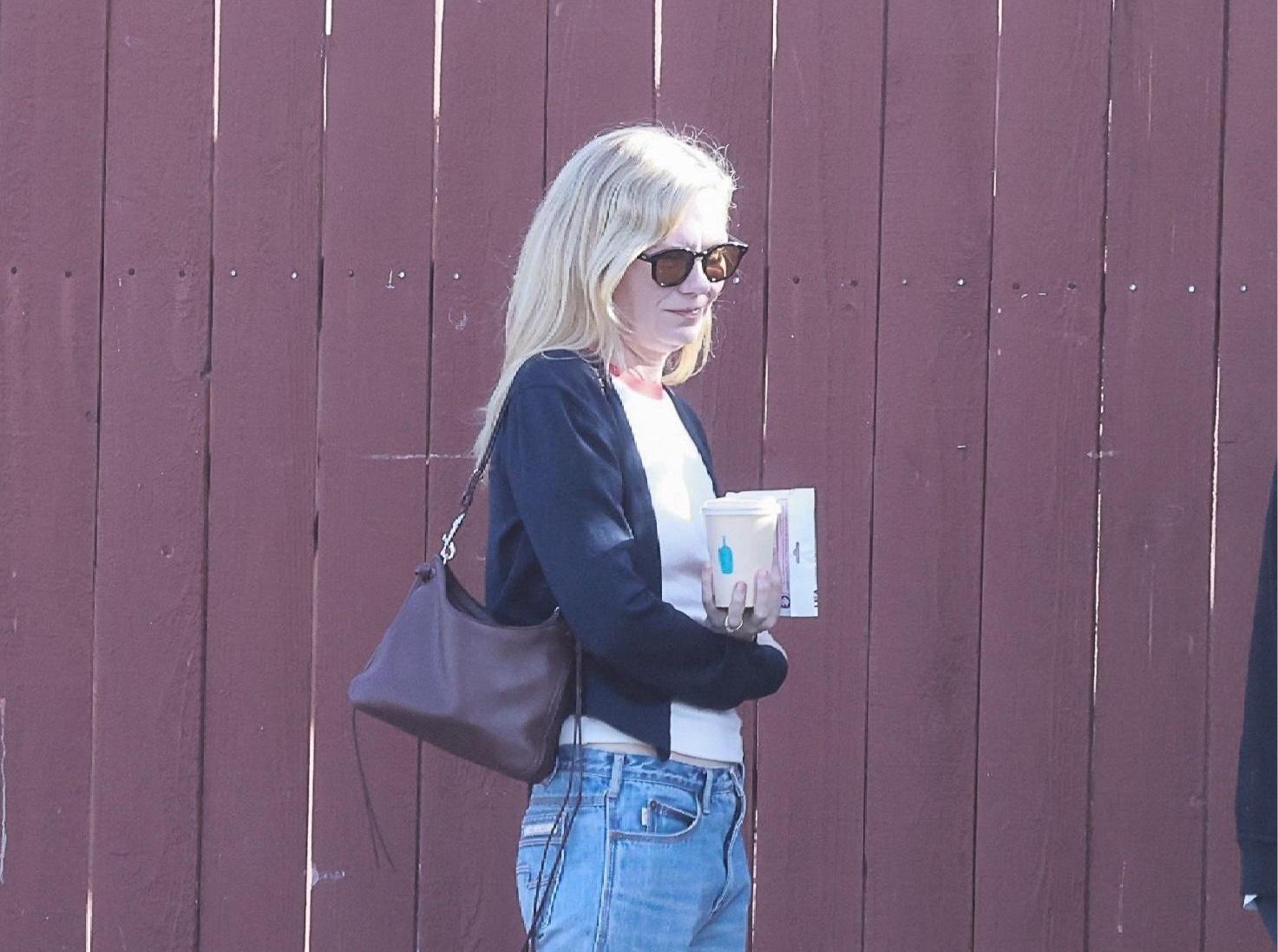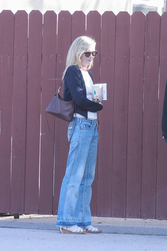 Пример идеальной посадки джинсов сегодня демонстрирует Кирстен Данст: пояс мягко фиксирует талию, линия бедер остается расслабленной, а прямая штанина струится по ноге и чуть прикрывает простые кожаные сандалии, визуально вытягивая силуэт. Кирстен собирает этот базовый крой в максимально ненавязчивый аутфит: белый топ, темный кардиган, коричневая сумка и солнцезащитные очки превращают образ в кадр из хроник «тихого» голливудского стиля, где все держится на правильных пропорциях, а не на громких трендах.