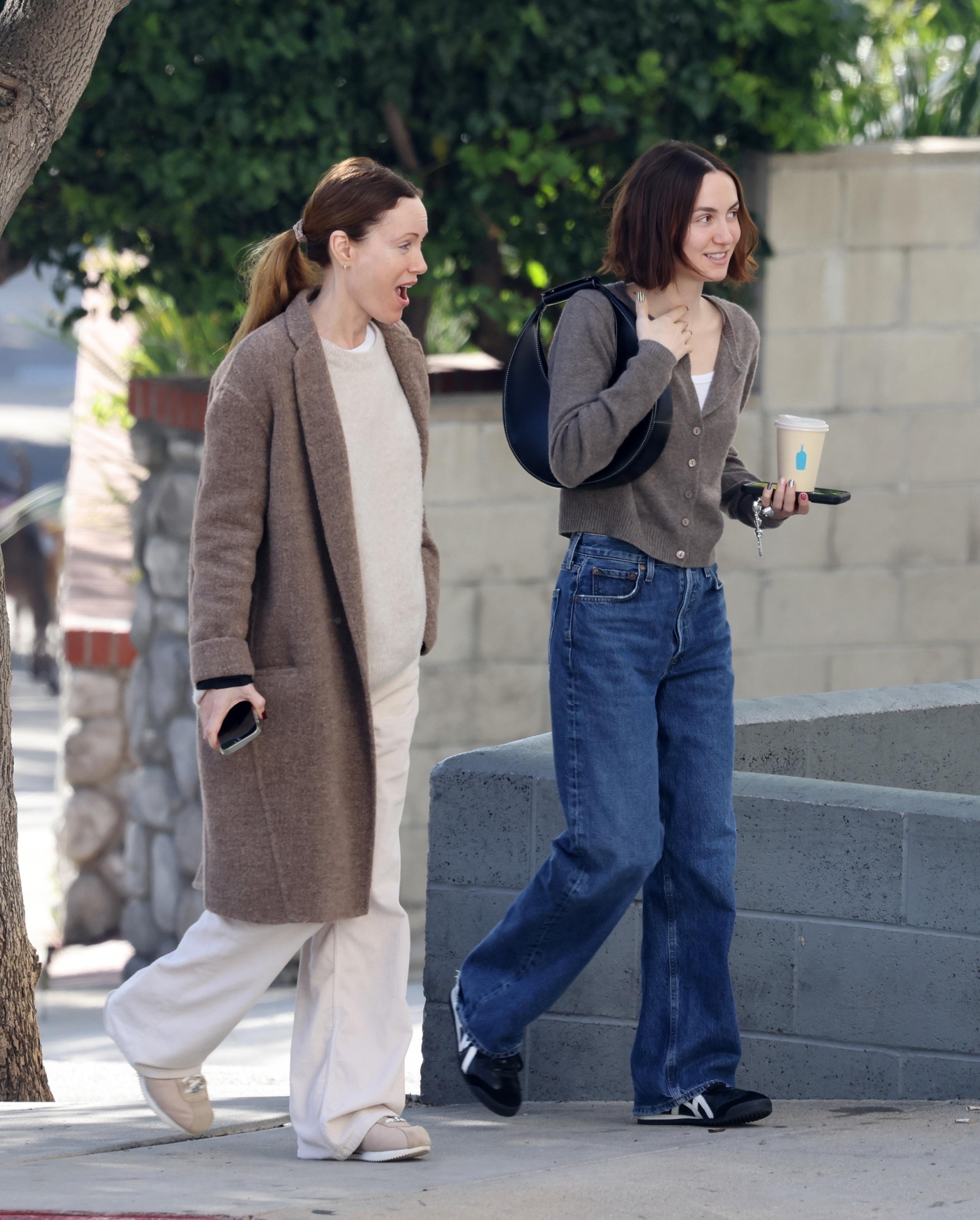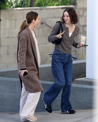 Идеальная базовая зимняя формула от Мод Апатоу — гармоничное сочетание теплого уюта и непринужденной элегантности. Актриса выбирает классические синие джинсы в сочетании с серо-коричневым кардиганом свободного кроя, создающим атмосферу расслабленности и комфорта. Завершающим штрихом становятся кроссовки Asics Onitsuka Tiger — современные, лаконичные и трендовые, они привносят в образ легкий спортивный шик и служат ярким акцентом, умело балансируя между традиционной текстурой денима и благородной мягкостью кашемира.