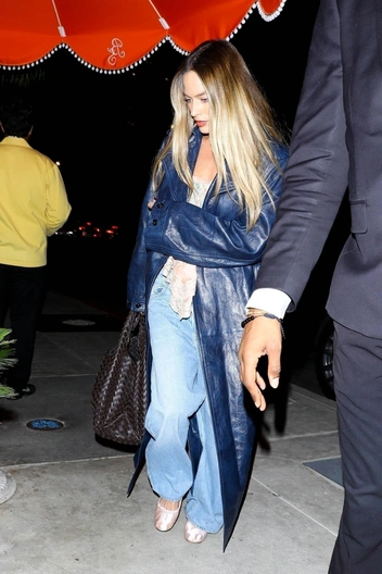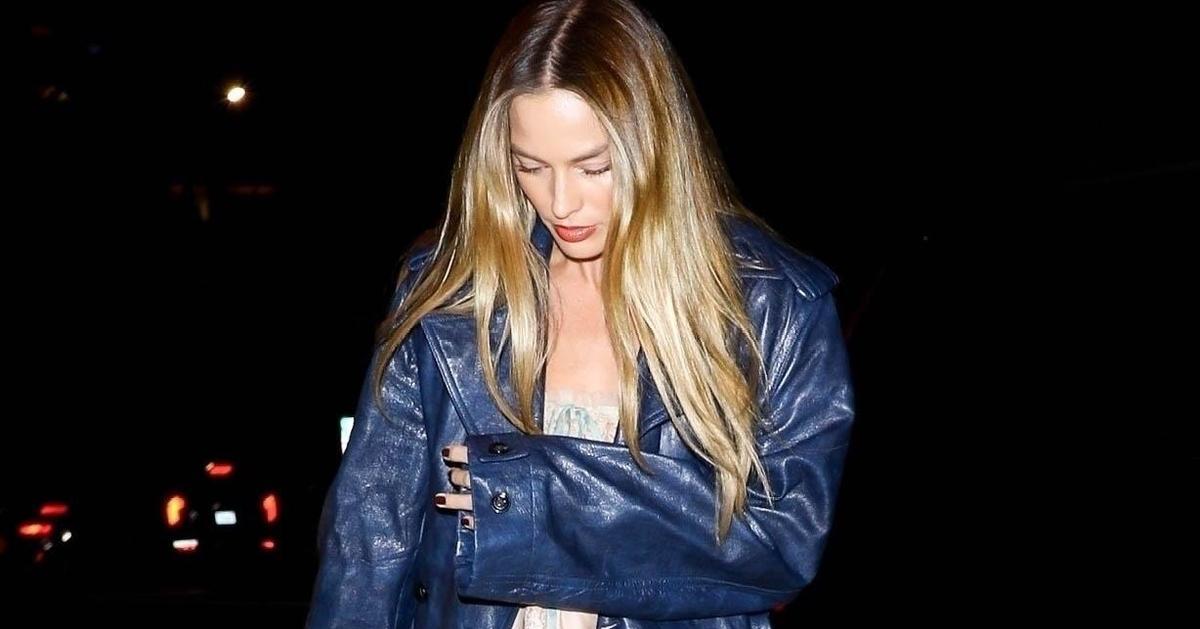 Марго Робби устроила себе шикарный заслуженный отдых в знаменитом голливудском клубе Bird Street, появившись в эффектном длинном кожаном плаще насыщенного синего цвета. Этот смелый выбор подчеркивает ее уверенность в себе и безупречное чувство стиля. Такой образ сложно еще чем-то улучшить, но у Марго получилось — в руках у актрисы элегантная макси-сумка Bottega Veneta в фирменном плетении intrecciato, а на ногах — нежно-розовые балетки в стиле ballet core, которые идеально расслабляют «строгий» аутфит.