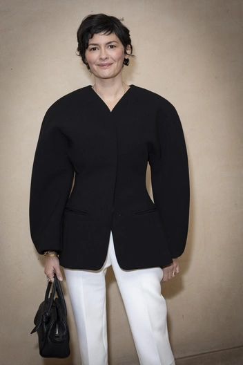 Сезон Недель моды прододлжается, и на очереди бренд Jacquemus. Луки гостей показа порадовали едва ли не больше, чем образы на моделях. Например, Одри Тоту поставила на вечную классику и сочетала прямые белые брюки, которые сделали ноги визуально более стройными, с пиджаком черного цвета, который придал объем. Аксессуары были лаконичными, что в стиле бренда — лодочки с острым мысом и сумка прямоугольной формы.