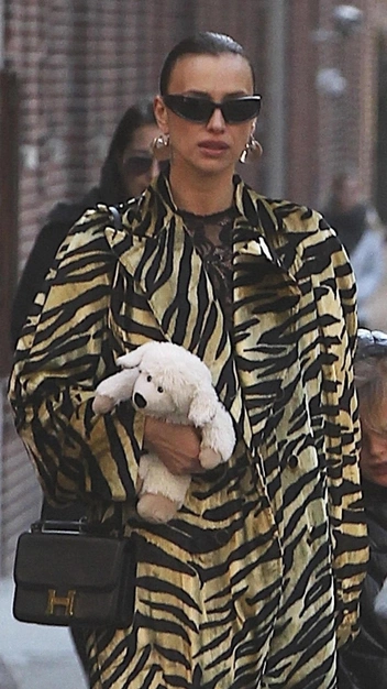 Если вы уже сейчас находитесь в поиске модной верхней одежды на весну, тогда предлагаем вдохновиться недавним аутфитом Ирины Шейк и примерить на себя главный тренд грядущего сезона. На прогулку с дочерью топ-модель отправилась в эффектном образе, застилизовав спортивные кроссовки и леггинсы с кружевным топом. В качестве верха она выбрала расслабленное пальто с анималистичным принтом в длине макси. Завершили выход сумка, очки и серьги-кольца.
