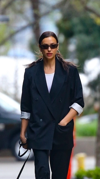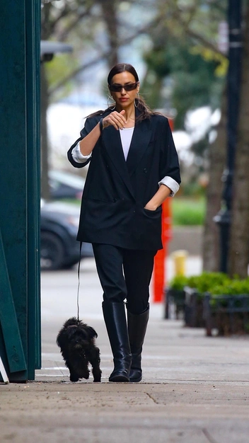 Ирина Шейк всегда выглядит модно: будь то встреча с друзьями или же прогулка с собакой. На этот раз знаменитость повторила стильный тренд, который пришел к нам из гардероба аристократов, что увлекаются конными скачками. Супермодель надела свободный темно-синий костюм, брюки которого она заправила в жокейские сапоги на маленьком каблуке. Завершили выход узкие очки и крупные серьги-кольца.
