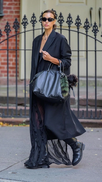 Если вы пропустили этот модный тренд, рассказываем. Еще летом самые модные девушки в мире стали украшать свои сумки брелоками — это могут быть бусы, плюшевые игрушки, фигурки на кольцах из путешествий в самых разных цветах и размерах. Ирина Шейк, например, выбрала для повседневного выхода вместительную кожаную сумку, которую украсила меховым брелоком в черно-зеленом цвете.