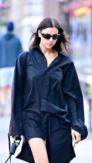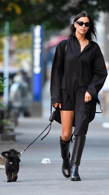 Только на днях мы обсуждали, что Ирина Шейк начала экспериментировать с цветом в гардеробе, как она вновь вернулась к черным тотал-лукам. Но кто мы такие, чтобы не согласиться с ее модным решением? Такой цвет позволяет почувствовать силу и уверенность в себе. Так, топ-модель примерила платье-рубашку свободного кроя и подобрала к нему грубые кожаные ботинки. Эффектности выходу придали очки в духе нулевых.