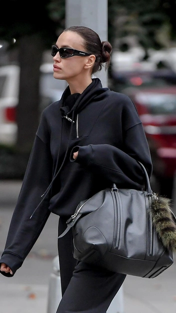 Рассматриваем новый образ Ирины Шейк и восхищаемся, как ей удается выглядеть стильно в спортивной одежде. Так, она примерила расслабленную толстовку без капюшона и подобрала к ней широкие брюки с молнией по всей длине. Чтобы повседневный аутфит смотрелся модно и дорого, знаменитость особое внимание обратила на обувь и аксессуары — остроносые ботильоны на тонком каблуке, кожаную сумку и очки.