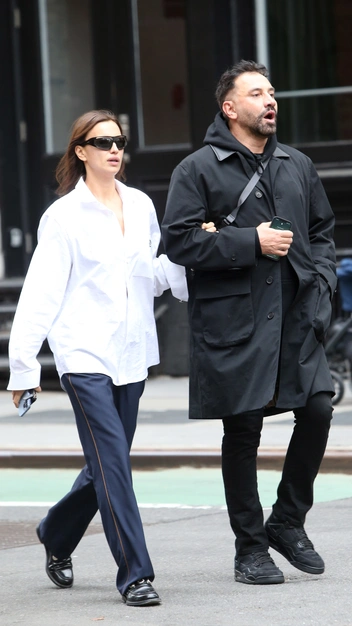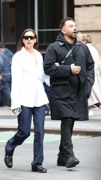 В последнее время Ирина Шейк все больше тяготеет к оверсайзу и комфортным аутфитам. Например, носит белую рубашку с мужского плеча и прямые костюмные брюки. Свой стильный аутфит модель завершила кожаными лоферами и самыми модными солнцезащитными очками этого года в футуристичном стиле.