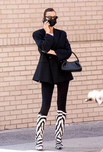 Принт зебра претендует на звание самой популярной расцветки весны 2021: в этом сезоне многие звезды предпочитают его леопардовому и змеиному, хотя, казалось бы, последние на протяжении долгого времени сохраняли за собой первенство в трендовых повестках. Необычное решение, как включить этот колоритный принт в повседневный гардероб, демонстрирует Ирина Шейк: супермодель выгуливает сапоги в расцветке зебра в комбинации с облегающим низом и приталенным жакетом — органичный микс, который сразу выделит вас из толпы.