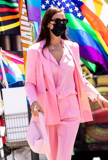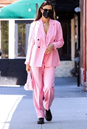 Грядущее лето ознаменуется повсеместной популярностью сразу двух цветов — зеленого и розового. Многие звезды готовятся сочетать их в рамках одного образа, а некоторые селебрити настроены сделать ставку на лаконичный и универсальный монохром. Среди последних оказалась и Ирина Шейк, которая давно и страстно любит все оттенки розового — от пудровых до неоновых. Для одного из своих последних выходов звезда подиумов примерила расслабленный брючный костюм в нежно-розовом тоне. Аутфит дополнили сумка в тон, черная обувь и брутальные солнцезащитные очки.