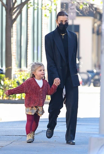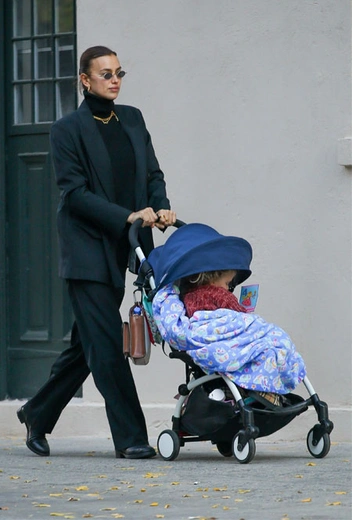 Новый день – новый образ Ирины Шейк для прогулки с дочерью. На этот раз российская топ-модель показала, насколько универсальным и функциональным может быть унисекс-стиль. Звезда примерила более легкий и расслабленный аутфит, чем обычно – свободный маскулинный костюм графитового оттенка. Ирина дополнила аутфит лаконичной водолазкой с высоким воротом, мини-сумкой Burberry и золотыми украшениями.