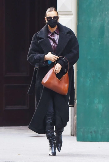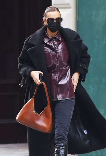 Каждый сезон дизайнеры предлагают нам массу стильных вариантов сумок – как лаконичных и минималистичных, так и вариантов в макси-размере и с акцентными декором. Огромную коллекцию трендовых аксессуаров имеет и топ-модель Ирина Шейк, мастерски подбирая сумки к повседневным нарядам. Недавно она продемонстрировала, что уже приобрела минималистичную хобо – отличную инвестицию к предстоящему сезону. Модный аксессуар она решила дополнить джинсами-скинни, лаковой рубашкой цвета бургунди с контрастной строчкой и объемным черным пальто.