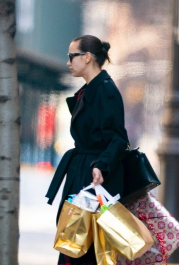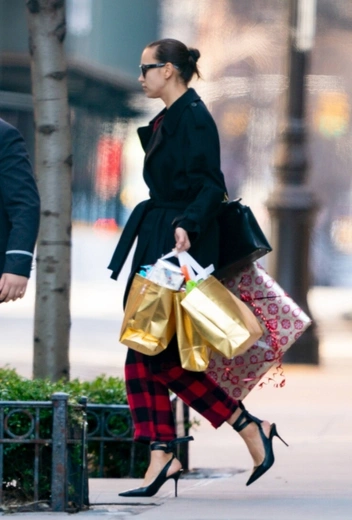 В предновогоднюю пору селебрити начинают настоящий шопинг-рейд и радуют поклонников яркими стритстайл-выходами. Особенное внимание папарацци привлек один из выходов Ирины Шейк. Молодая мама выбралась на шопинг в гордом одиночестве в стильном образе и вернулась из магазинов с большим количеством сумок — поход явно удался. Для своего выхода супермодель примерила клетчатые укороченные брюки, черное пальто и модные туфли на каблуке с завязками.