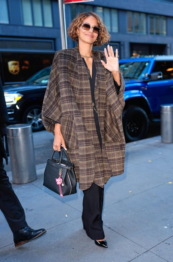 Чаще всего мимолетные тренды вроде ярких обвесов на сумках буквально «вспыхивают» — и так же стремительно исчезают. Они быстро «загораются» и почти сразу теряют свою актуальность. Казалось бы, то же должно было случиться с брелоками и ироничными игрушками на люксовых сумках, но Хэлли Берри доказывает обратное. Актриса до сих пор стилизует свою мини‑подружку ярко‑розовой подвеской, и это работает как намеренный модный жест. Акксессуар так сильно выбивается из ее классического аутфита, что воспринимается не как случайная деталь, а как продуманный контрапункт — тот самый маленький акцент, который делает образ запоминающимся.