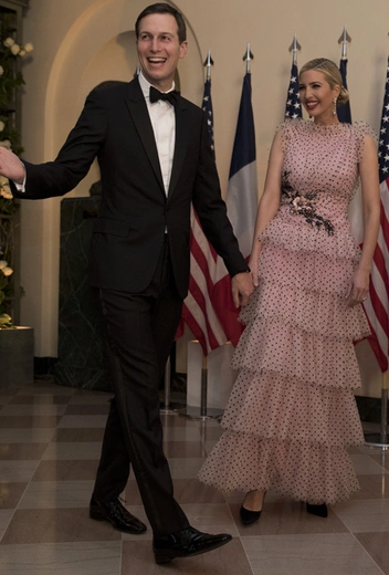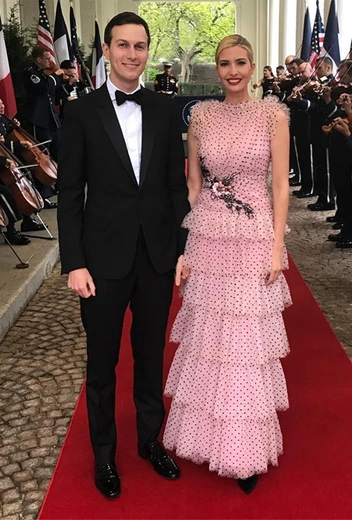 Вчера, 24 апреля, в Белом доме состоялся гала-ужин, который в честь президента Франции Эммануэля Макрона и его супруги Брижит дали Дональд и Мелания Трамп. Кроме президентов и первых леди двух стран, банкет посетила первая дочь США Иванка Трамп вместе с мужем Джаредом Кушнером. Для ужина Иванка выбрала каскадное платье в мелкий горох от Rodarte (в котором, кстати, уже были замечены Кирстен Данст и Милли Бобби Браун).