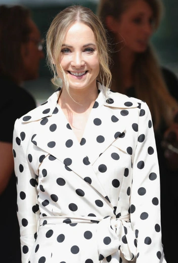 После съемок Джоан в «Аббатстве Даунтаун» это классическое платье-плащ в черный горох — закономерное продолжение темы утонченного стиля английской аристократии. Актриса не побоялась пойти дальше в винтажном направлении и подчеркнуть образ изящными мюли яркого красного оттенка.