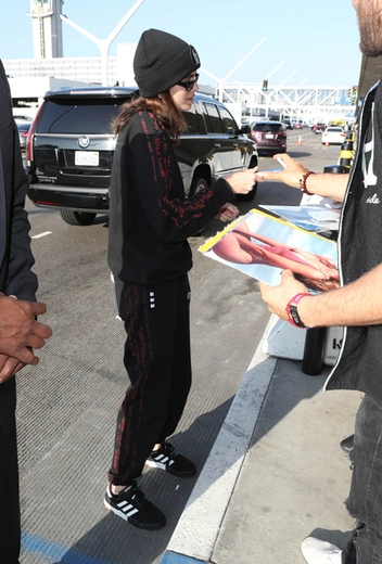 22 мая в лос-анджелеском аэропорту появилась Кайя Гербер. Для перелета юная модель выбрала ставший привычным спортивный костюм, шапку-бини, пару черных сникерсов и солнцезащитные очки. Образ «трудного подростка» мисс Гербер очень идет, согласны?