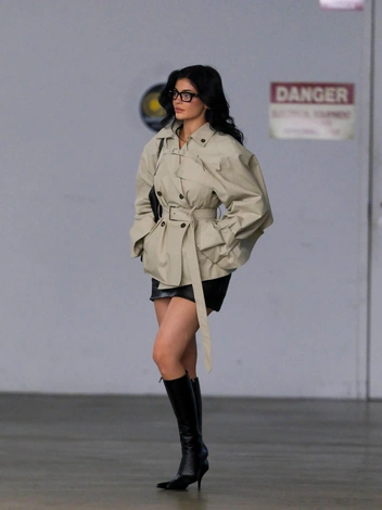 Хотя тренд «офисная сирена» понемногу уступает стилю «бизнесмена 80-х», модные девушки по всему миру продолжают выбирать именно первый вариант «офискора». Кайли Дженнер, например, предпочла надеть кожаную мини-юбку с классическим бежевым тренчем, который сделал акцент на ее ногах. Высокие сапоги с острым носом придали образу сексуальности, а очки в толстой оправе подчеркнули скулы Кайли. Образ завершил легкий макияж и укладка с крупными локонами.