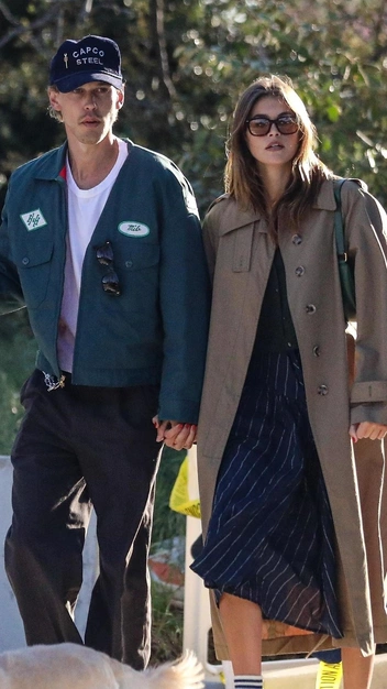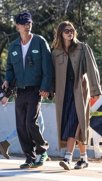 Кайя Гербер провела день в компании своего молодого человека Остина Батлера, и выбрала она для прогулки женственный и стильный образ. Знаменитость надела темно-синее платье-рубашку в полоску и накинула поверх безупречный тренч. Выход она дополнила винтажными кедами, которые она примерила на высокие носки в спортивном стиле, зеленой сумкой и солнцезащитными очками.