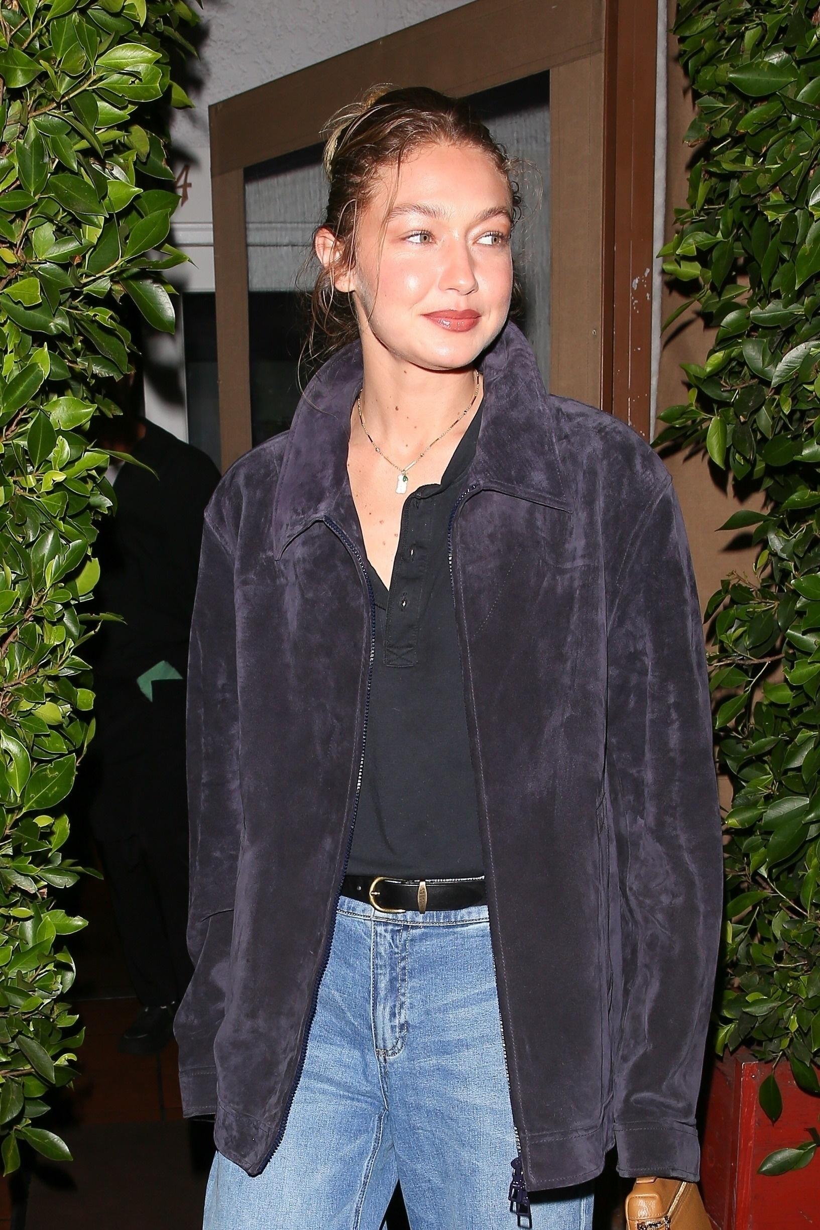 Джиджи Хадид не отстает от трендов и для своего последнего выхода выбрала куртку из самого модного материала этой осени — вельвета. Модель сочетает его со своим любимым базовым аутфитом: прямыми голубыми джинсами и черным пуловером на пуговицах. Такой кэжуал-образ младшая Хадид выбрала для празднования дня рождения отца в одном из лучших ресторанов Лос-Анджелеса, что еще раз подтверждает универсальность вельветовых элементов гардероба — они в любой ситуации выглядят уместно и дорого.