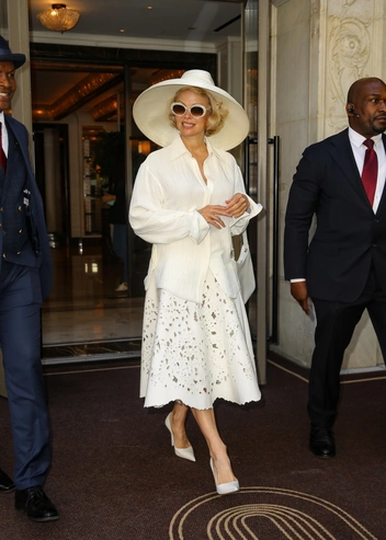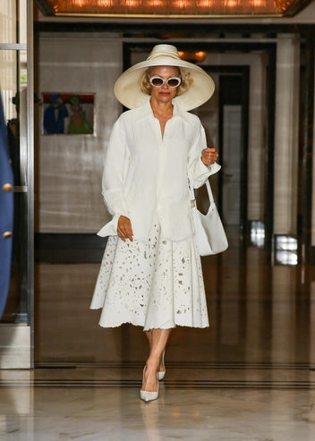 Последний из них — в Каннах, куда Памела прибыла одной из последних. Для прогулки по французскому городу актриса предпочла юбку А-силуэта с узором в стиле кроше, ставшую главным акцентом аутфита. А дополнила ее льняная рубашка, расстегнутая снизу, и шляпа из рафии, скрывающая от лишних глаз.
