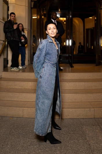 Тренд на стиль 90-х продолжает оставаться одним из самых популярных, и одна из его отличительных черт — вареная джинса. Лучший пример — пальто от Alaia на Майли Сайрус.