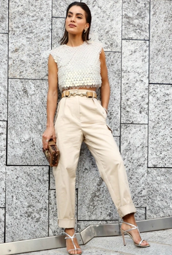 Камила — частая гостья фэшн-показов и старается не пропускать ни одного дефиле в рамках Недель моды. В Милане блогер представила стильный лук на показе Alberta Ferretti SS20. Девушка подобрала наряд в светлых тонах: белый топ в крупных пайетках дополнили бежевые брюки на высокой посадке и серебряные босоножки на высоком каблуке. Девушка подчеркнула образ оригинальным вытянутым клатчем и бежевым поясным ремнем из кожи.