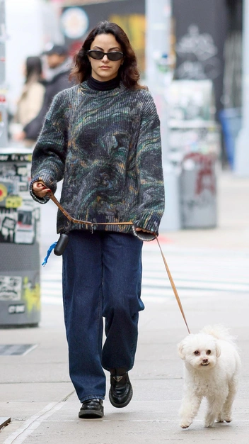 Актриса Камила Мендес доказала, что выглядеть стильно и элегантно нужно всегда, даже если на вас спортивный аутфит и базовые брюки. Так, для прогулки с собакой звезда подобрала лоферы Prada, которые, несмотря на свое удобство, придают образу утонченности и шика. Носить такую обувь можно со всем, что есть в вашем гардеробе. Камила же дополнила ими стильный свитер и модные широкие джинсы.