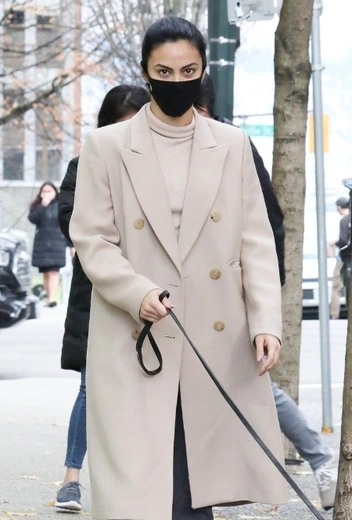 Если есть сомнения в том, насколько ваш casual-образ соответствует актуальной трендовой повестке, добавьте в него элементы в нюдовых оттенках, и вы обеспечите себе стопроцентное попадание в сезонные тенденции. Этой осенью и зимой селебрити с удовольствием возвращаются к самым лаконичным оттенкам цветовой палитры, которые особенно выгодно смотрятся в исполнении верхней одежды. Например, для прогулок по городу с питомцем актриса Камила Мендес примеряет пальто и кофту в минималистичном кремовом оттенке, сочетая их с черно-серыми джинсами, массивными ботинками и защитной маской в тон обуви.