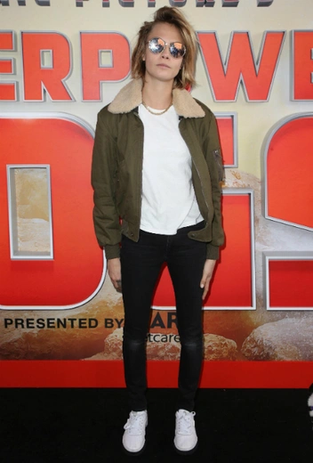 Каре идет не только короткая стрижка, но и мальчуганский стиль: немного messy, немного гламурных нот — и классический выходной стиль супермодели готов. В рамках премьеры документального фильма к ней еще присоединились песики: кстати, из Кары наверняка бы получилась прекрасная собачница