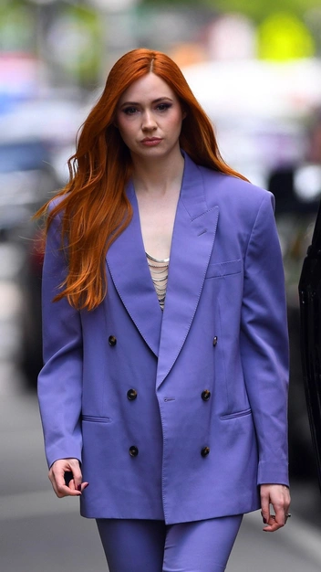 Голливудская актриса выглядит безупречно в голубом брючном костюме. Его изюминкой стал объемный пиджак с акцентными плечами — именно такой был в коллекциях знаменитых дизайнеров на последних показах Недели моды. Под жакет Карен Гиллан надела топ, выполненный из цепей, и дополнила аутфит босоножками под цвет костюма. Образ она выдержала в минималистичном стиле, поэтому из украшений на знаменитости — лишь кольцо с камнем.