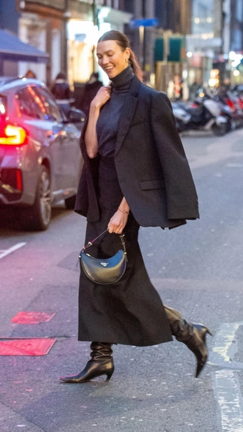 Американская модель продолжает транслировать нам безупречный гардероб в стиле успешной бизнесвумен, который нам тоже хочется иметь. Недавно она появилась в стильном образе, в котором можно отправиться и в офис, и на деловую встречу, и в театр, и даже на свидание. Карли Клосс надела серый трикотажный топ без рукавов, эффектную юбку-карандаш на высокой посадке и объемный пиджак в оттенке графита. К аутфиту она подобрала трендовые сапоги-слоучи на низком каблуке и кожаную сумку.