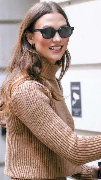 Карли Клосс любит комфортные и понятные вещи, в которых звезда всегда выглядит потрясающе. На каждый день девушка выбирает трикотажное платье длины миди с длинным рукавом песочного оттенка, которое сочетает с мюлями на небольшом каблуке и солнцезащитными очками.